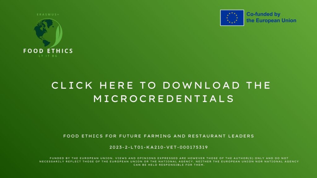 - A micro-credential system for “Food Ethics in the Synergy Restaurant-Farmers.”